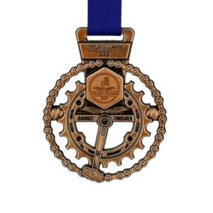 Every sporting event requires a medal manufacturer to adopt an individual approach. Thus athletes receive great prizes that will make them remember their participation in the competition for years to come. Our medal for Cycle The Lake will definitely bring back fond memories. This cast medal is distinguished by its shape made to resemble a bicycle wheel sprocket. In this way, it ideally reflects the atmosphere of a bicycle racing competition. In addition, it features numerous surface decorations. Extraordinarily careful and meticulous approach allowed us to perfectly reproduce the design, thanks to which these personalised medals fully met our client’s expectations.