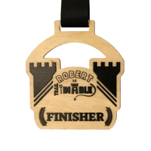 Personalised running medal made for FutaPécs. It's a shirt-shaped medal with bright UV print and the event name.