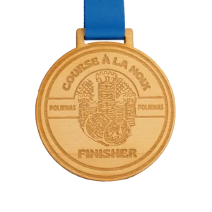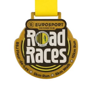A running medal for participants of the Heuvelland Marathon. The medal has a unique shape and features a printed footprint using UV printing. The solid design and detailed execution highlight the prestige and challenge of this race. An ideal choice for marathon organisers.