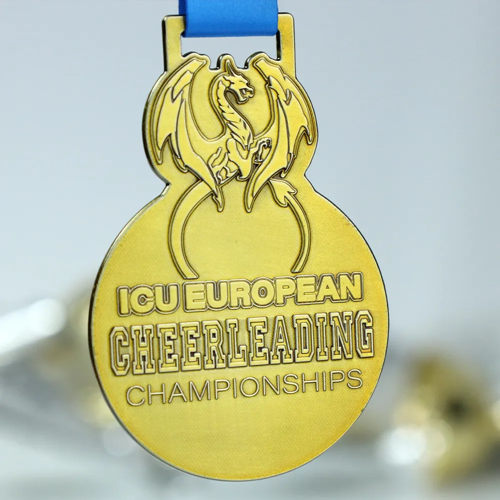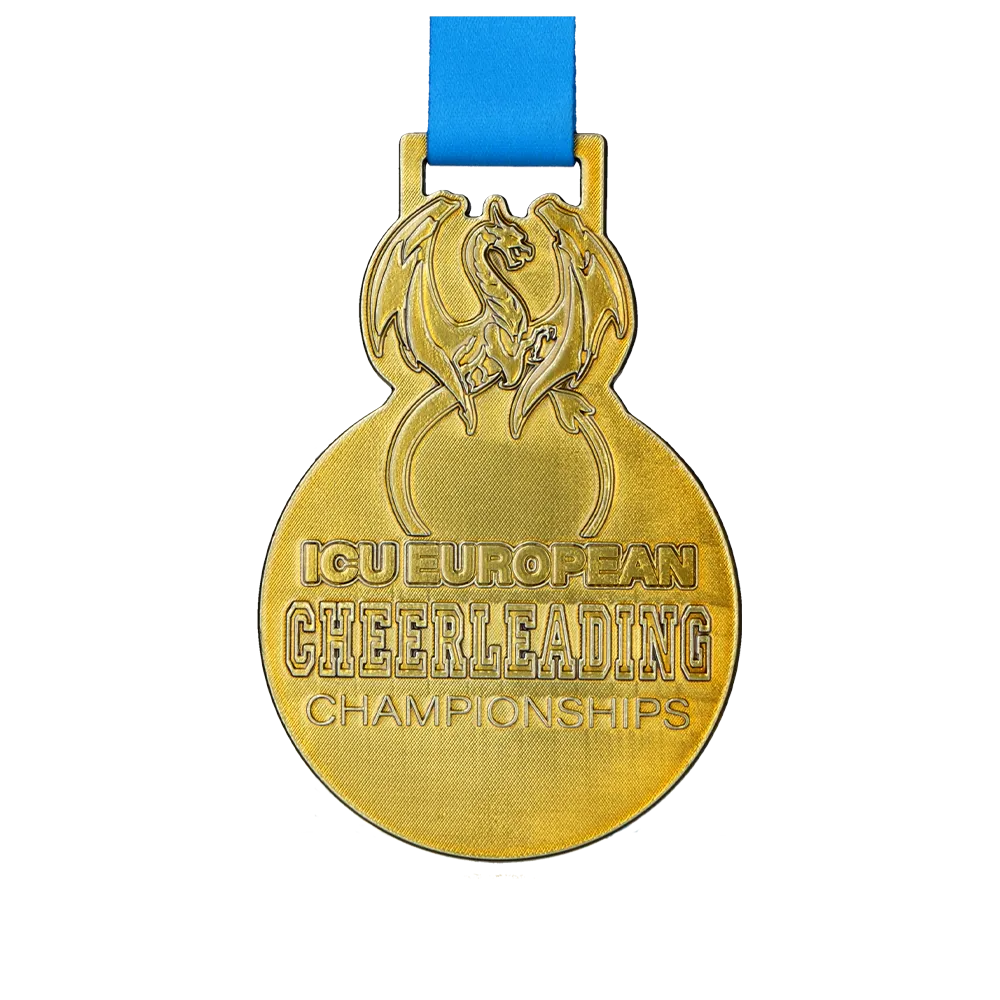 Here is a prestigious bespoke medal created for the ICU European Cheerleading Championships 2025, combining elegance with dynamic sports symbolism. The base, made of Zinc Alloy, was moulded into a unique shape where precision die-casting technology allowed for a detailed reproduction of a mythical creature towering over the competition name. It is the ideal combination of aesthetic value and durability, serving as a perfect showcase for this international event.