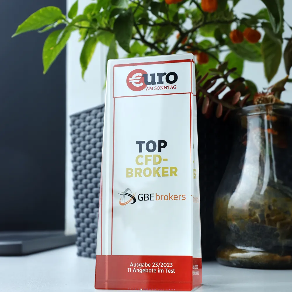 Glass business award for Euro Am Sonntag. For this award, we used a glass column on which we printed colorful graphics.