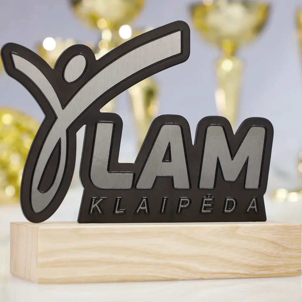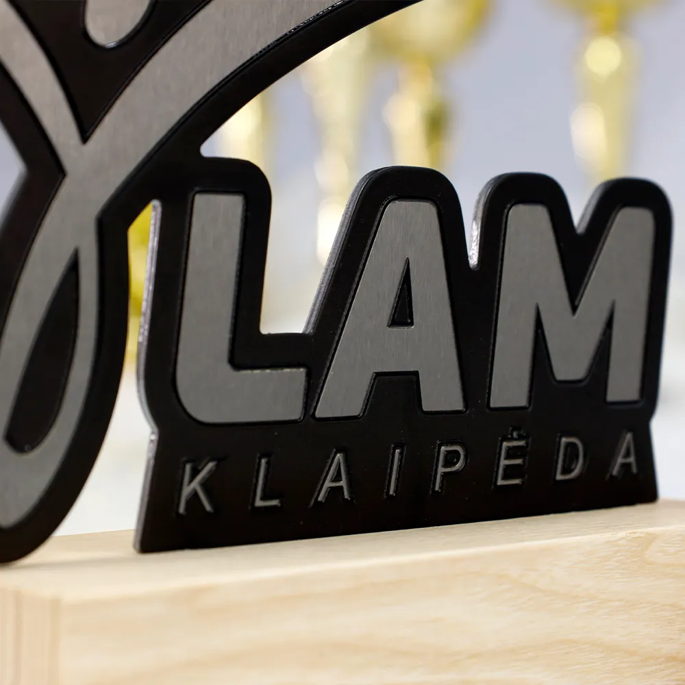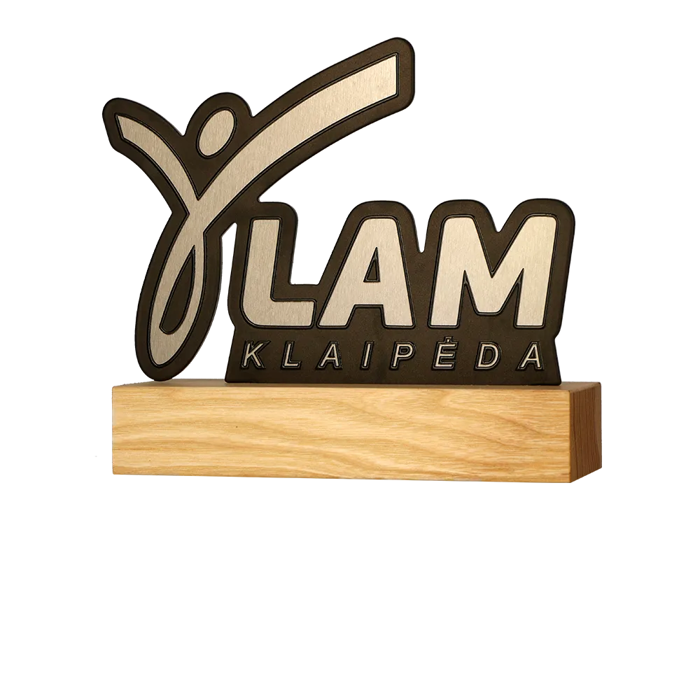 Running trophy created for the LAM Klaipėda event. The key element of the design is a dynamic silhouette of a person in motion, perfectly integrated into the event’s logo. The trophy is made from a combination of high-quality steel and durable wood. The wooden base gives the design a natural feel. Thanks to precise laser cutting, sharp contours and flawless details have been achieved.